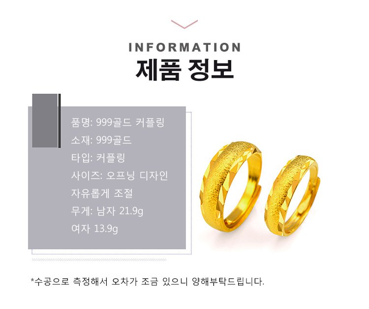 엄선된 고순도 999골드, 정교한 장인 공예로 정련과 버니쉬, 반짝반짝 아름다운 윤기 선사! 애인/부모님/친구에게 좋은 선물! 바로 구매시 ₩59,900/2개